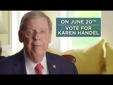 U.S. Senator Johnny Isakson (R-GA) shares that he is supporting and voting for Karen Handel in GA-6, the District he was born in. He touts her knowledge of the district and her experience.